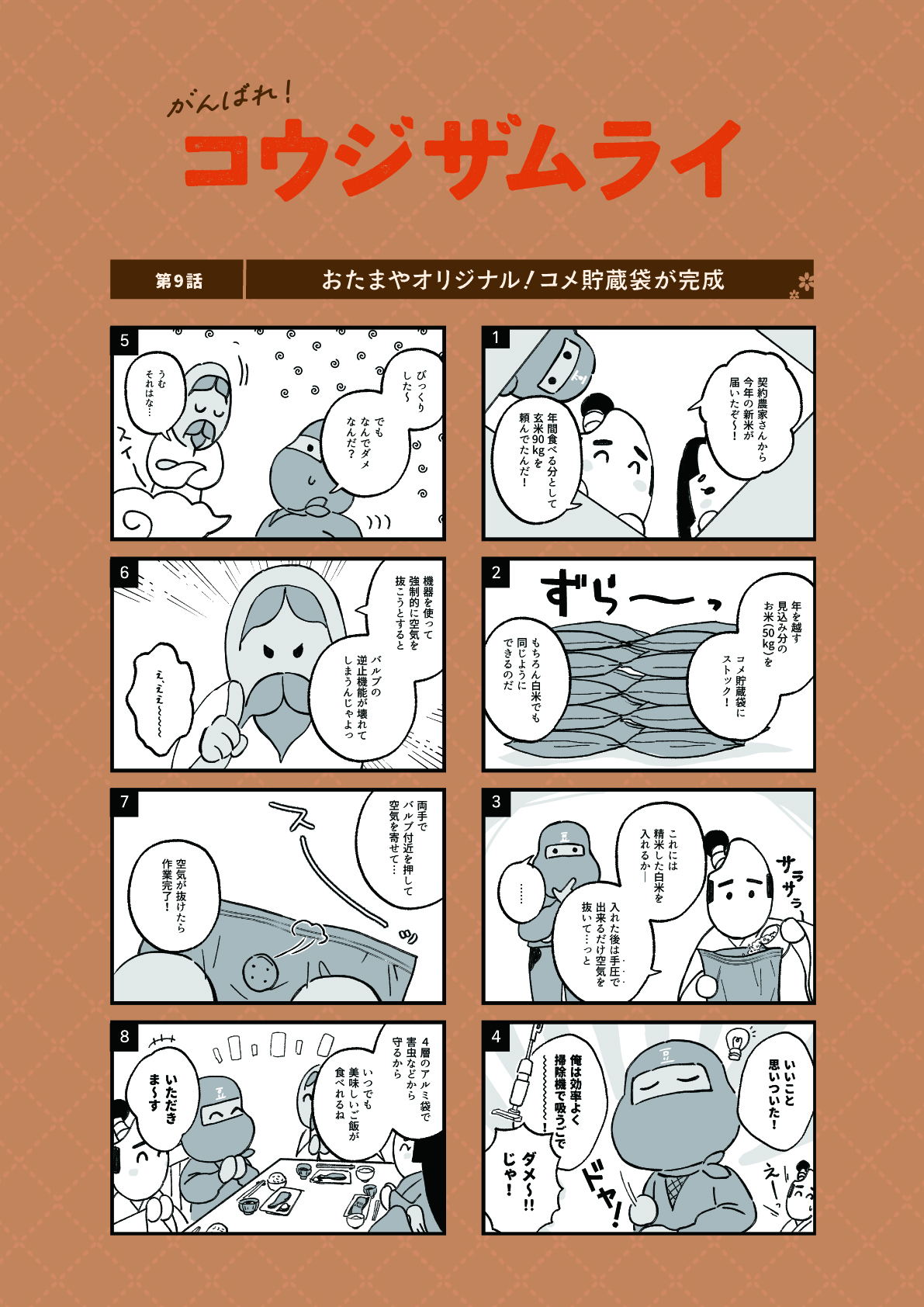 第9話 おたまやオリジナル!コメ貯蔵袋が完成